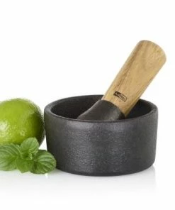 Mit seinem edlen und zeitlosen Design ist er ein echter Hingucker in jeder Küche. Der Griff des Stößels ist aus hochwertigem Akazienholz und liegt dadurch besonders gut in der Hand, während die gusseisernen Reibflächen robust und kraftvoll ideale Mahl- und Reibergebnisse erzielen. Die Konture des Mörsers und die Geometrie des Stößels sind perfekt aufeinander abgestimmt. Die handliche Größe ist ideal zur Verwendung am Tisch. Die rutschfesten Gummifüße für ein sicheres Arbeiten und geschützte Arbeitsflächen.