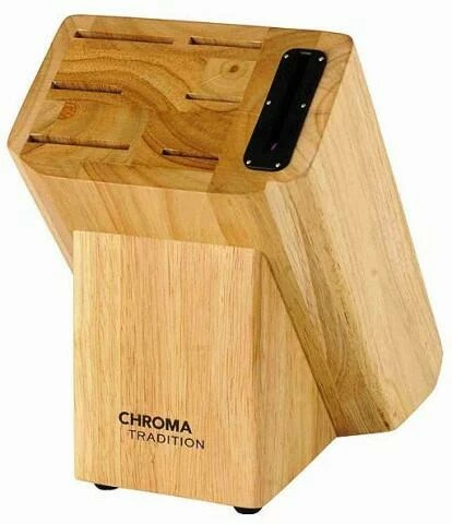 In dieser robusten Messerserie ist der Messerblock T-20S der Star. In den Block ist ein hochwertiges Schleifgerät integriert, genau passend für die soliden Traditionsmesser. Das heisst, mit einem minimalen Aufwand können die CHROMA Traditionsmesser scharf gehalten werden. Immer scharfe Messer zuhause oder im Restaurant!