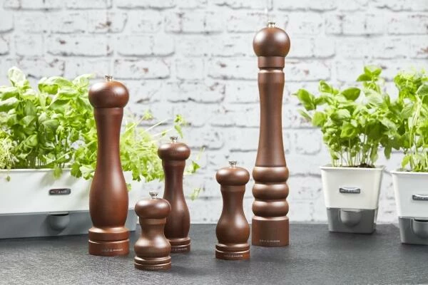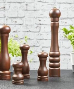 Die klassischen Capstan-Mühlen aus dunkel gebeiztem Holz verleihen jedem Esstisch Raffinesse. Stellen Sie den gewünschten Mahlgrad (von fein bis grobkörnig) ein, indem Sie einfach den Knopf am Deckel anziehen bzw. lösen. Diese Salzmühle verfügt über ein Mahlwerk aus Keramik. Wir empfehlen, in all unseren Mühlen hochwertige Pfefferkörner und grobes Meer- oder Steinsalz zu verwenden.