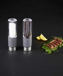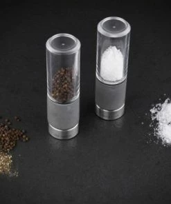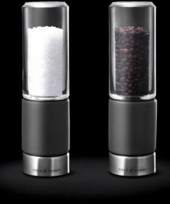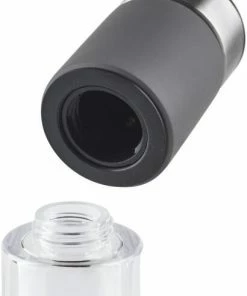 Ein stilvolles und zeitgemässes Pfeffer-und Salzmühlen-Set, das von der urbanen britischen Architektur inspiriert wurde. Hergestellt aus kristallklarem Acryl und Beton. Die klare Acrylplatte bildet einen guten Kontrast zur glatten, dunkelgrauen Betonbasis. Die Einfachheit und der Minimalismus der Form lassen die Eigenschaften der Materialien hervorstechen. Der Beton wurde mit einer Schicht Klarlack versehen, um seine Oberfläche zu schützen. Der Boden verfügt ausserdem über einen Schutzring aus Kunststoff, der verhindert, dass der Beton mit Arbeitsflächen in Kontakt kommt, um Kratzer oder Beschädigungen zu vermeiden. Ausgestattet mit dem Cole & Mason Precision+ Karbonstahlmahlwerk, das Pfefferkörner schält, anstatt sie zu zerdrücken, und diamantscharfer Keramik für Salz, um eine maximale Geschmacksfreisetzung aus jedem Dreh zu gewährleisten. Die Mühlen sind mit hochwertigen schwarzen Pfefferkörnern aus Vietnam und grobem Meersalz aus Belgien gefüllt und können ab dem Moment, in dem Sie sie erhalten, verwendet werden. Wenn Sie sie nachfüllen müssen, drehen Sie die Mühle einfach um und schrauben Sie die Acrylplatte des Betonunterteils ab. Füllen. Die strapazierfähigen Eigenschaften der Mechanismen wurden in England entwickelt und hergestellt und sorgen dafür, dass Sie immer eine konstant herausragende Leistung erhalten. Um den Mahlgrad von fein auf grob einzustellen, ziehen Sie einfach den Knopf am Boden der Mühle fest oder lösen Sie ihn. Verwenden Sie eine grobe Einstellung für Steaks oder Tomatensalat, eine mittlere Einstellung für Pizza und eine feine Einstellung für Suppen und Saucen. Nachdem Sie die gewünschte Mahlgradgrösse ausgewählt haben, halten Sie die Mühle fest am Betonabschnitt und drehen Sie am Edelstahlring.