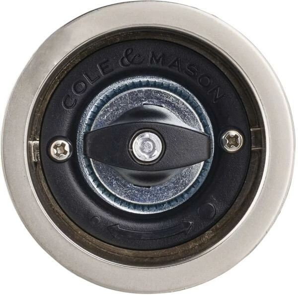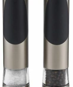 Das elektronische Mühlenset von Cole & Mason Richmond bietet eine elegante und zeitgemäße Möglichkeit, Ihre Speisen für diejenigen zu würzen, die elektronische Mühlen gegenüber manuellen Mühlen bevorzugen. Hergestellt aus hochwertigem Acryl und ABS mit einem modernen gebürsteten Chrom und schwarzem Finish, sind sie eine stilvolle Ergänzung für jede Küche oder jeden Tisch und dennoch ein unverzichtbares Küchenwerkzeug im Alltag. Um mit dem Mahlen zu beginnen, halten Sie einfach die Taste oben gedrückt und lassen Sie sie los, wenn Sie mit dem Würzen fertig sind. Stellen Sie den Mahlgrad mit dem Drehknopf am Fuß der Mühle von fein bis grob auf Ihr Gericht ein. Um die Mühlen zu füllen, drehen Sie einfach die Acrylmitte und die Oberseite aus gebürstetem Chrom, sodass das Vorhängeschlosssymbol mit dem Entriegelungssymbol ausgerichtet ist.