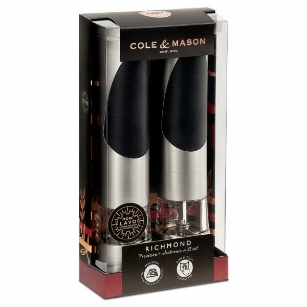 Cole & Mason Richmond Elektronische Salz- und Pfeffermühle, Geschenkset, ungefüllt, 21,5 cm