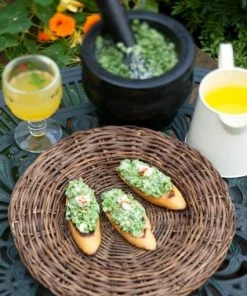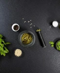 Nützlich für eine Vielzahl von Speisen wie Hummus und Guacamole sowie zum Zerkleinern von Kräutern und zum Mahlen von Gewürzen. Die unglasierte Innenfläche und das spezielle Innenprofil zusammen mit dem Stößel sorgen für optimale Ergebnisse beim Mahlen und Zerstoßen von feuchten und trockenen Zutaten. Handliche und leichte Bedienung. Geeignet für Spülmaschinen.