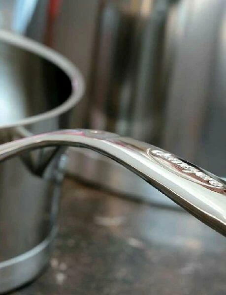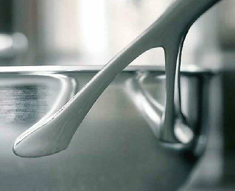 Gegossene Handgriffe aus Edelstahl 18/10: Durch ihre Form und Ausführung aus “gegossenem” Edelstahl 18/10 bleiben die Griffe auf Elektrokochplatten meistens ausreichend kühl. Sie wurden entwickelt, um die Wärmeleitfähigkeit minimal zu halten, damit man sie besser ohne Risiko anfassen kann (50°C). Vorsicht bei Gasbrennern… Flammen, die über den Rand des Bodens lecken, können die Griffe schon erhitzen. Beim Abwaschen bleibt nie Wasser in den Griffen zurück.