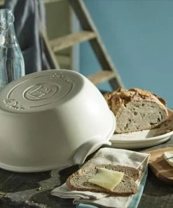 Emile Henry Brotbackform Set in fusain. Die runde Form der Brotbackhaube hat genau den gleichen Effekt wie die Wölbung traditioneller Brotbacköfen, damit das Brot beim Backen den richtigen Feuchtigkeitsgrad bekommt.