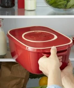 Der passende Deckel schützt die Lebensmittel im Kühlschrank oder z.B. auch im Keller – umgedreht wird der Deckel ratzfatz dann zum Serviertablett. Die Käsebox aus Keramik bietet viel Stauraum und ist in der Handhabung durch seitliche Griffe erleichtert.