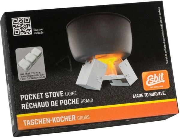 Der große Taschenkocher aus elektrolytisch verzinktem Stahl ist immer noch klein genug, um ihn problemlos auf jede Tour mitzunehmen. 12 Trockenbrennstoff-Tabletten à 14g mit einer Brenndauer von je ca. 12 Minuten gehören zum Lieferumfang, der Brennstoff lässt sich bequem direkt im Kocher transportieren. Die Kocher-Position ist in 3 Stufen wählbar.