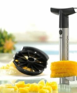 Wer einmal frische Ananas probiert hat, will sie nie wieder missen: Saftig, süß und einfach voller Geschmack. Und mit dem richtigen Werkzeug wird Ananasschneiden zum Kinderspiel: Der GEFU Ananasschneider PROFESSIONAL bereitet die Ananas im Handumdrehen appetitlich zu, perfektes Portionieren ist dabei durch die aufgedruckte Skala zur Anzeige der Scheiben-Anzahl garantiert.
