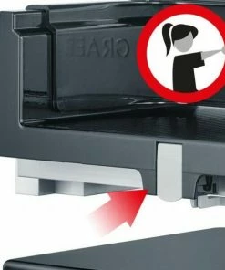 - Stabiler und leichtgängiger Kunststoffschlitten mit Kindersicherung
