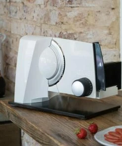 Frisches Essen schmackhaft und nachhaltig zubereiten – das fängt bereits beim Schneiden an. Mit seinem kompakten Design findet der Allesschneider Sliced Kitchen S 11001 von GRAEF in jeder Küche seinen Platz. Er ist dabei sowohl für junge Haushalte, als auch für jeden gedacht, der Wert auf frische, gesunde Ernährung legt. Die Metallmaschine mit freitragender Kunststoffbodenplatte überzeugt vor allem durch das solide Zusammenspiel aller Komponenten. Der energiesparende Gleichstrommotor Eco Power Motion Motor arbeitet zugleich stark und leise mit 45 Watt und einer Spitzenschneidleistung von 170 Watt bei konstanter Drehzahl. Er lässt ein rostfreies Edelstahlmesser mit Wellenschliff rotieren, welches über einen Safety-Verschluss verfügt, wodurch ein schneller und sicherer Messerwechsel möglich ist. Zusätzlich sorgt der stabile und leichtgängige Schlitten mit Kindersicherung für ein sicheres hauchdünnes Schneiden von Brot, Wurst oder Käse. Nicht zuletzt glänzt die Maschine durch seine zeitlose Form, einfache Bedienung und sichere Handhabung. Ein ideales und edles Einstiegs-Allesschneider in modernem Design „Made in Germany“.
