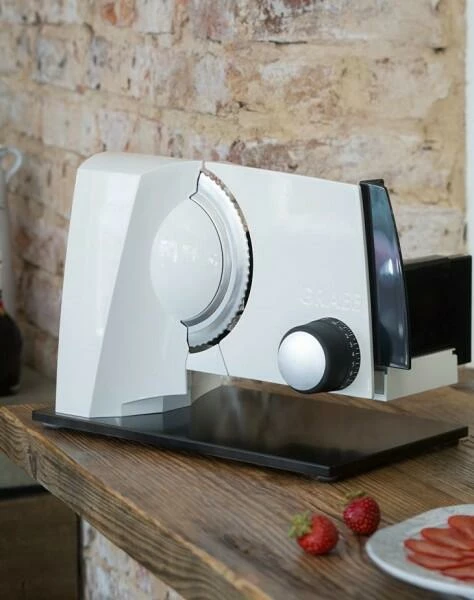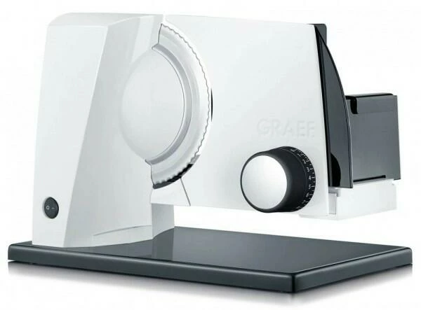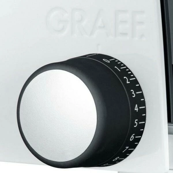 GRAEF Allesschneider Sliced Kitchen SKS 11001 in weiß. Schnell und präzise verwandelt der neue Allesschneider von GRAEF alle Ihre Zutaten in hauchdünne Scheiben, wodurch sich die Aromen noch intensiver entfalten können. Zusätzlich glänzt der Allesschneider durch Sicherheit, Qualität, Komfort sowie raffinierten, innovativen Details. Das ideale Einsteiger-Modell im edlen Design – Made in Germany.