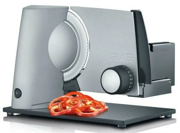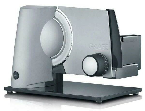 Allesschneider Sliced Kitchen SKS 32000 in silber. Schnell und präzise verwandelt der neue Allesschneider von GRAEF alle Ihre Zutaten in hauchdünne Scheiben, wodurch sich die Aromen noch intensiver entfalten können. Zusätzlich glänzt der Allesschneider durch Sicherheit, Qualität, Komfort sowie raffinierten, innovativen Details. Das ideale Einsteiger-Modell im edlen Design – Made in Germany.