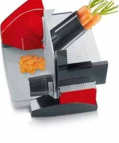 Schneidemaschine durch ihren hohen Bedien- und Reinigungskomfort sowie praktisches Zubehör. Mit dem MiniSlice Aufsatz können auch kleinere Zutaten sicher und komfortabel geschnitten werden: Durch einen Einfüllschacht fallen Gemüse, Obst oder Salami dem Messer einfach mittels Schwerkraft entgegen. Auch kleine Kartoffeln oder Pilze können mit hoher Geschwindigkeit ohne Reste und ohne Verletzungsgefahr in dünne Scheiben geschnitten werden. Durch den dünnen Schnitt kann sich das Aroma der Zutaten intensiver entfalten und verkürzt zusätzlich auch die Garzeit beim Kochen.