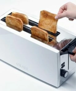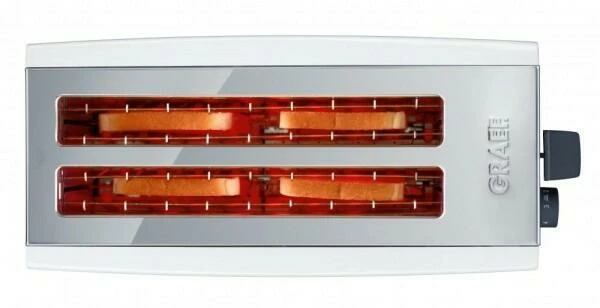 Graef 4 Scheiben Edelstahl Toaster TO 101 im klassischen Silber, bräunt Ihnen gleich vier Toasts auf einmal. Die langen Wartezeiten auf einen Toast, während die Familie bereits am Frühstückstisch sitzt, gehören der Vergangenheit an. Mit dem 4 Scheiben Edelstahl Toaster TO 101 verwöhnen Sie die ganze Familie mit knusprigen Toasts. Das Ziel – knusprige XXL-Toasts und bester Geschmack. Mmmmmh, riechen Sie schon den Duft von frisch geröstetem Toastbrot?