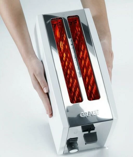 Das Edelstahl Gehäuse des 4 Scheiben Toasters von Graef ist wärmeisoliert, sodass es während der Röstung gefahrlos berührt werden kann. Die Soft-Lift-Funktion lässt die fertigen Toastscheiben sanft nach oben fahren. Zudem erleichtert es die Nachhebevorrichtung die Toasts zu entnehmen. Auch das Reinigen des Graef Toasters ist nun viel einfacher, denn die Edelstahlkrümelschublade verfügt über eine Pushfunktion. In Punkto Sicherheit trumpft der 4 Scheiben Edelstahl Toaster mit seiner Sicherheitsabschaltung auf, sollte sich das Röstgut einmal verklemmen.