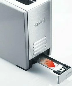 Der Toaster TO 90 hat ein wärmeisoliertes Aluminiumdruckguß- / Edelstahlgehäuse und bietet neben elektronischer Regelung von Röstgrad, Defrost und Stoppfunktion auch auf mechanischer Seite beste Eigenschaften: der Bräunungsgradregler mit “Clic Clic” Funktion in 6 Stufen, die Nachhebevorrichtung, die lautlose Brotscheibenzentrierung, die Krümelschublade aus Edelstahl mit Push-Funktion sind nur einige Ausstattungsmerkmale.