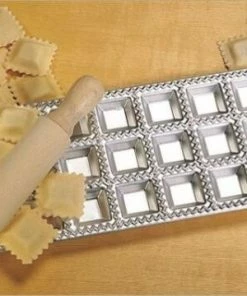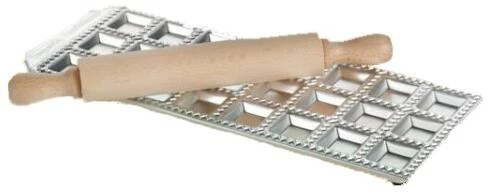 Der praktische Küchenhelfer zur Herstellung italienischer Ravioli, der lingurischen Nudelspezialität. Dabei handelt es sich um gefüllten Teigtaschen, die mit Hackfleisch oder, in der Originalvariante aus Genua, mit Kalbsfleisch und Innereien gefüllt werden.