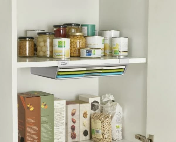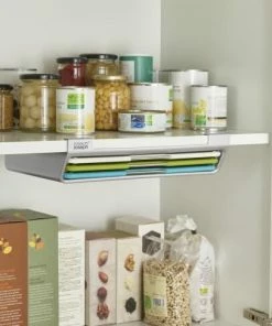 Ob unter oder im Schrank, das Schneidebretter-Set Folio™ von Joseph Joseph, lässt sich einfach mit zwei Schrauben anbringen. Die unterschiedlichen Farben der Bretter helfen Kreuzkontaminationen zu vermeiden. Die messer freundlichen Schneidebretter verschwinden bei Nichtgebrauch schnell in ihrem schlanken Gehäuse.