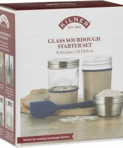 Kilner Sauerteig Starter-Set. Trauen Sie sich an Ihren eigenen Sauerteig Ansatz. Set von Kilner inklusive 2 Weithals-Gläsern, Messdeckel, Spatel und Rezeptheft.