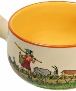 Jedes Caquelon ist ein Unikat und wird nach den Zeichnungen des berühmten Schweizer Malers Alois Carigiet in der Schweiz von Hand bemalt.