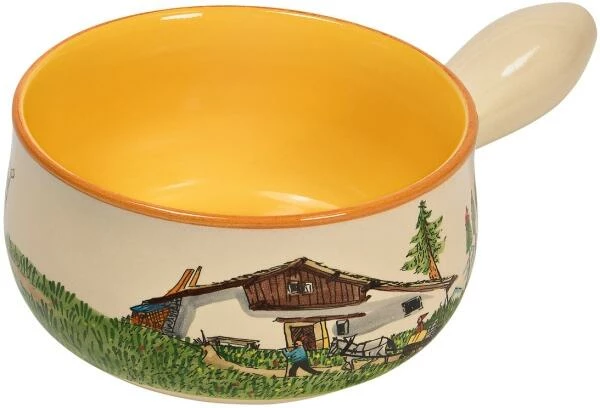 Dieses traditionelle von handbemalte Caquelon wird aus hochwertiger Keramik von Hand gefertigt und schafft eine heimelige Atmosphäre auf Ihrem Esstisch.