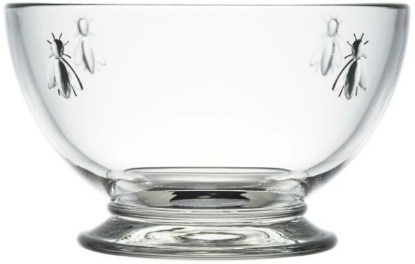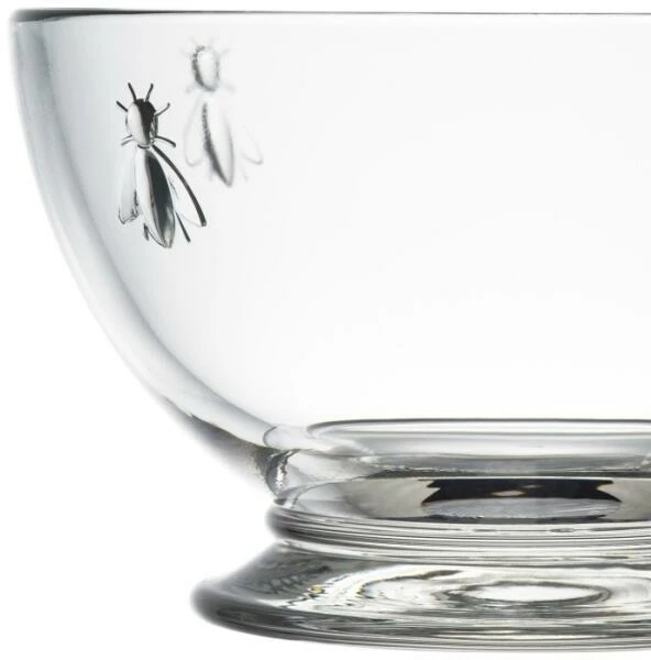 La Rochère Dessertschale Abeille, 6er Set. Die Glasschalen mit Standfuß sind verziert mit Bienen. In 2 Größen erhältlich. Ideal geeignet für Vorspeisen und Desserts wie Krabbencocktails, Eis, Mousse au chocolat, Sorbets oder Obstsalat.