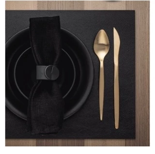 Lacor Tischset Cos, rechteckig. Cleane und edle Tischbedeckung. Rechteckiges Tischset aus genarbtem, schwarzen Leder. Ein toller Tischschutz und gleichzeitig ein eleganter Rahmen für Ihr Geschirr. Aus recyceltem Leder.