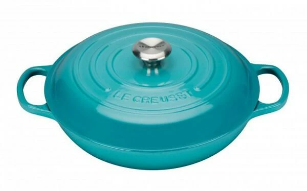 Die neue Serie Signature von Le Creuset kombiniert neue mit bewährten Produkteigenschaften. Die Signature Produkte verfügen über eine speziell entwickelte strapazierfähige Innen-Emaille, die nicht an Glanz und Farbe verliert und zudem eine hohe Widerstandskraft gegen Abnutzung aufweist. Außerdem sorgt die helle und lebendige Farbe der Innen-Emaille für ein schönes Aussehen. Alle Signature Produkte verfügen über große Griffe, wodurch ein leichter, sicherer Transport vom Herd in den Backofen und von der Küche zum Esstisch gewährleistet wird. Der ergonomische Knopf aus gebürstetem Edelstahl besticht nicht nur durch sein formschönes Design, sondern auch durch seine Hitzebeständigkeit bis zu 260 °C. Das moderne, frische Aussehen von Signature wird von einem Deckel mit deutlicher Markenerkennung komplettiert, in dessen Rand Stabilisierer integriert sind, die verhindern, dass der Deckel wackelt. Somit ist für mehr Sicherheit gesorgt.