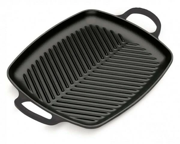 Die Grillplatten von Le Creuset sind aus Gusseisen hergestellt und zeichnen sich durch eine gleichmäßige Wärmeverteilung und eine hervorragende Wärmespeicherung aus. So können Sie auch ohne Grill die typischen Grillstreifen auf Steaks, Hähnchen- und Putenfilets zaubern! Durch die Rillen wird zudem überschüssiges Fett zurückgehalten.