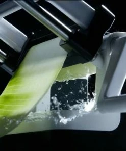 Mit dem Catto schneiden Sie Gemüse oder Obst in Form, wie es mit dem Messer oder Gemüsehobel nicht möglich wäre – Endlos-Gemüsebahnen aus Zucchini, Rettich, Kohlrabi, Rote Bete, Kartoffeln, Äpfeln, …. Die gleichmäßigen Bahnen können eine Breite von bis zu 10,5cm haben.