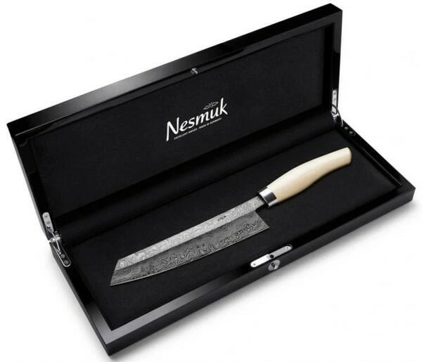 Nesmuk verbindet traditionsreiche Handwerkkunst mit modernster Technologie. Das Unternehmen aus Solingen entwickelt und fertigt Messer in höchstmöglicher Schärfe und setzt dabei auf Stahlsorten, Edel-Materialien und Technologien, die in der Schneidwarenindustrie noch nie zuvor verwendet worden sind – und genau das macht den Unterschied! Alle Messer werden unter dem Anspruch gefertigt, in ihrer Schärfe nicht überboten werden zu können und in jedem Anwendungsbereich den feinstmöglichen Schnitt zu ermöglichen. Die Produkte entstehen in mühevoller, mehrjähriger Detail-Arbeit. Alle Produkte sind mit praktischen und dekorativen Alleinstellungsmerkmalen ausgestattet und genießen den Ruf, jeweils die Besten in ihrer Kategorie zu sein! Sie sind zeitlos, funktional und von höchster Qualität. Es macht keinen Unterschied, ob das Messer links- und rechtshändig geführt wird.