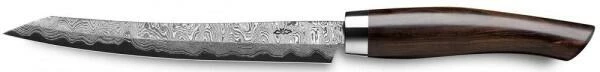 Kaum ein anderes Messer drückt Ursprung und Konstanz des handwerklichen Könnens so klar aus wie die handgefertigten Messer von Nesmuk. Die edle Messerklinge des Slicer-Messers aus der Serie Exklusiv C150 besteht aus 201 Lagen handgeschmiedeten wilden Damast und leistungsfähigen Kohlenstoffstähle. Das Messer besticht mit einem herausragenden Härtegrad von 64 – 65 HRC und sorgt somit für eine außergewöhnliche Messerschärfe und Schnitthaltigkeit. Das einzigartige Damastmuster macht jede Klinge und damit jedes Messer zu einem Unikat. Zusätzlich wird die Klinge durch eine spezielle, hochwertige NPC-Glasbeschichtung vor Rost und Anlaufen geschützt, die weltweit nur Nesmuk bietet. Dadurch benötigen die Messer keinen speziellen Pflegeaufwand. Geliefert wird das Messer n einer Klavierlackschatulle und eine hochwertigen Ledersteckscheide. Die Ledersteckscheide schützt den Nutzer vor Verletzungen und die Schneide vor Beschädigung und Abstumpfung.