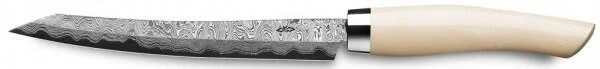 Kaum ein anderes Messer drückt Ursprung und Konstanz des handwerklichen Könnens so klar aus wie die handgefertigten Messer von Nesmuk. Die edle Messerklinge des Slicer-Messers aus der Serie Exklusiv C150 besteht aus 201 Lagen handgeschmiedeten wilden Damast und leistungsfähigen Kohlenstoffstähle. Das Messer besticht mit einem herausragenden Härtegrad von 64 – 65 HRC und sorgt somit für eine außergewöhnliche Messerschärfe und Schnitthaltigkeit. Das einzigartige Damastmuster macht jede Klinge und damit jedes Messer zu einem Unikat. Zusätzlich wird die Klinge durch eine spezielle, hochwertige NPC-Glasbeschichtung vor Rost und Anlaufen geschützt, die weltweit nur Nesmuk bietet. Dadurch benötigen die Messer keinen speziellen Pflegeaufwand. Geliefert wird das Messer n einer Klavierlackschatulle und eine hochwertigen Ledersteckscheide. Die Ledersteckscheide schützt den Nutzer vor Verletzungen und die Schneide vor Beschädigung und Abstumpfung.