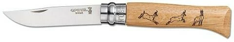 Messer Animalia Motiv Gams. Ein sehenswertes Motiv mit dem Bewegungsablauf einer Gams zeigt das Buchenholz-Heft dieses Taschenmessers aus der Collection Animalia. Die Klinge besteht aus rostfreiem Sandvik-Stahl.