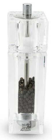 Pfeffermühle mit Salzstreuer aus Acryl. Das Pfeffer-Mahlwerk der PEUGEOT Pfeffermühle, bestehend aus einer zweireihigen Spiralverzahnung, führt und hält die Pfefferkörner für ein perfektes Mahlergebnis. Im Kopf der Pfeffermühle befindet sich der Salzstreuer.