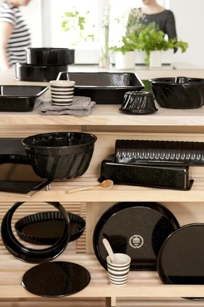 Das besondere Material Schwarzemaille ist schnitt- und kratzfest, säurebeständig und leicht zu reinigen. Emaille ist von Natur aus bakterienhemmend und aromaneutral.
