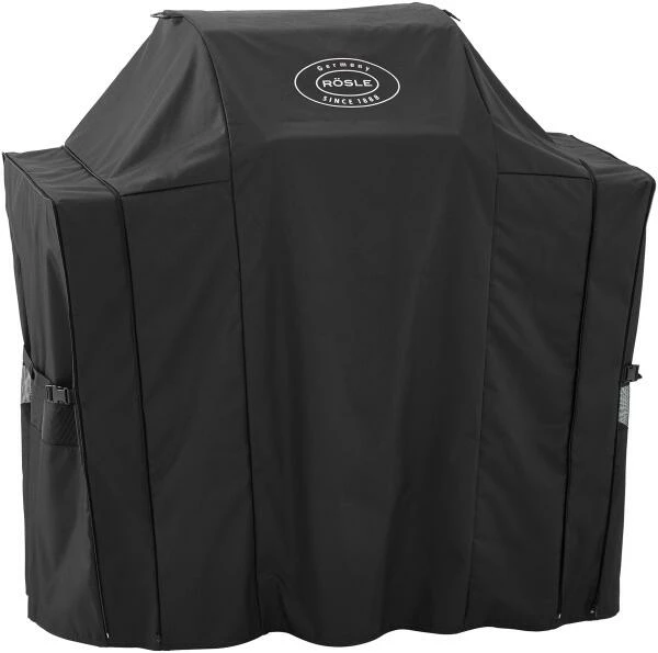 Rösle Abdeckhaube für VIDERO G4/G4-S. Die leichte und wetterfeste Haube ist ein zuverlässiger Schutz gegen Witterung, UV-Strahlung und Blütenstaub. Die Abdeckhaube bietet den optimalen Schutz für Ihre Rösle Gasgrill BBQ-Station VIDERO G4/G4-S. Sie ist größenverstellbar und bietet dank Reißverschluss Platz für ab- oder aufgeklappte Seitentische. Die verstellbaren Schnallen fixieren die Haube passgenau am Grill und bieten mit seitlichen Nebeneinsätzen Raum für optimale Luftzirkulation.