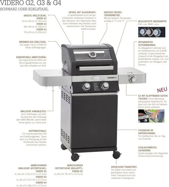 Eigenschaften der Rösle Gasgrill BBQ-Station VIDERO G4 aus Edelstahl (Modelljahr 2021):