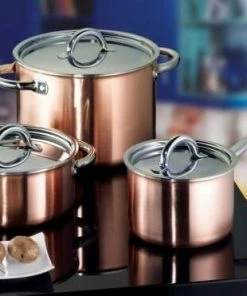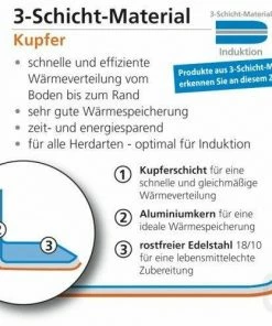 - hochwertiges 3-Schicht-Material aus Kupfer, Aluminium, rostfreiem Edelstahl 18/10 in schwerer Ausführung