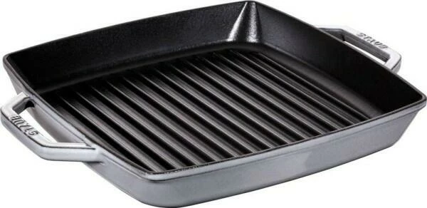 Staub Grillpfanne mit Seitengriffen in schwarz. Die vielseitige Pfanne aus Gusseisen.
