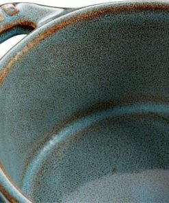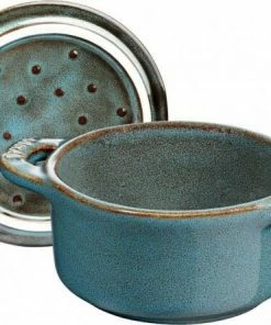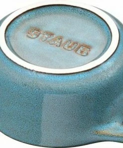 Staub Mini Cocotte in antiktürkis. Diese hübsche Cocotte aus Keramik ist bestens geeignet für das Zubereiten und Servieren von kleinen Portionen.