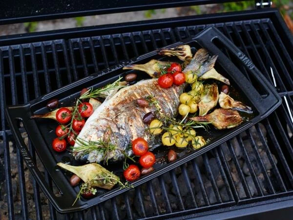 Mit der Plancha von Staub können Sie grillen wie in Spanien. Für alle, die es typisch spanisch mögen oder auch in der eigenen Küche leckere Grillgerichte zubereiten möchten, eignet sich die neue Grillplatte Plancha von Staub perfekt. Sie bietet viel Platz für leckere Speisen und kann auch als Servierplatte direkt auf dem Tisch verwendet werden.