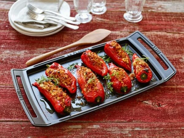 Die Plancha ermöglicht eine fettarme und unkomplizierte Zubereitung von Speisen. Besonders praktisch ist dabei die große Fläche, auf der es sich übrigens nicht nur grillen lässt. Auch Speisen wie Kaiserschmarren oder Pizza lassen sich auf der Platte zeitsparend für mehrere Personen zubereiten. Mit ihrer Größe von 47 x 25 cm bietet die Plancha von Staub zudem ausreichend Platz für das gemeinsame Essen mit der Familie oder mit Gästen. Nach der Zubereitung der Speisen lassen sich diese auch wunderbar am Tisch servieren.