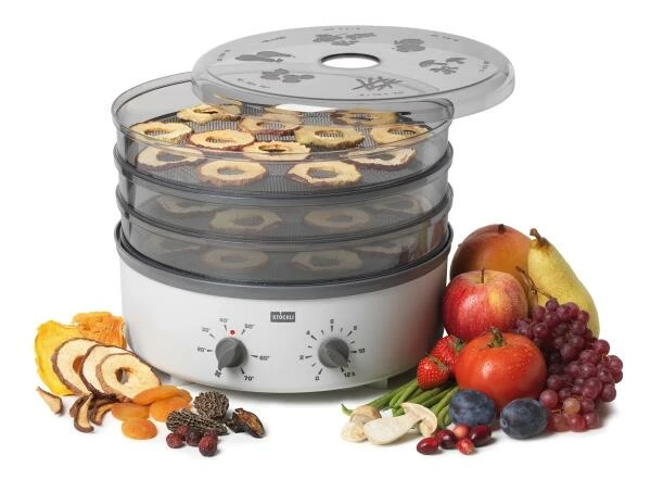 - Set bestehend aus Dörrautomat mit Zeitschaltuhr (12 Stunden) und 3 Metall-Dörrgittern, LED-Anzeige