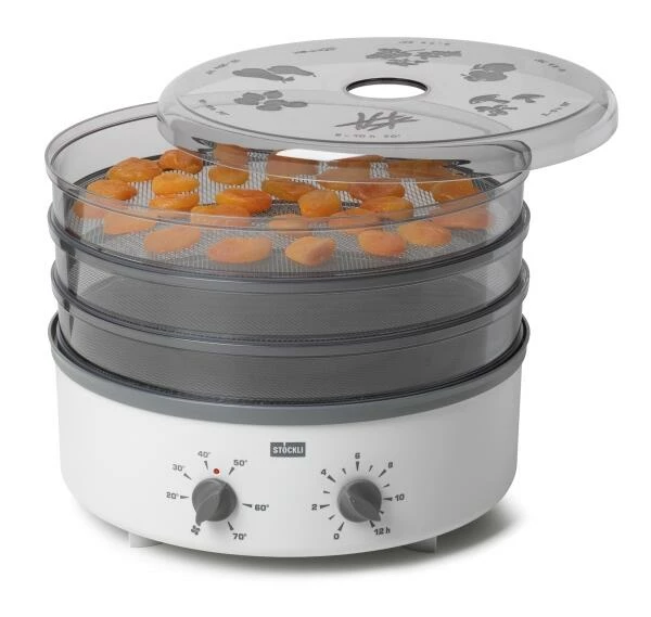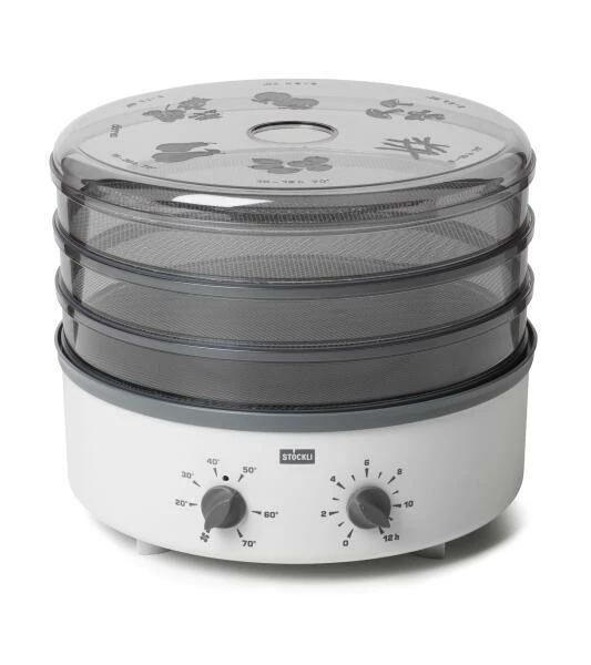 Stöckli Dörrautomat dörrex mit Timer und Metallgitter. Hochwertiger Dörrautomat mit Zeitschaltuhr und drei Metall-Dörrgittern.