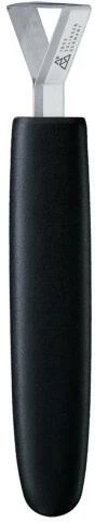 Mit einem Kerbmesser werden Dekorationen in Obst und Gemüse geschnitten. Je nach Einschnittwinkel und Druck ist die Schnitttiefe dabei frei wählbar. Das Kerbmesser ist auch beliebtes Bartool für Garnituren auf Orangen- und Zitronenscheiben. Durch seine symmetrische Form ist es für Linkshänder und Rechtshänder geeignet. Der Griff besteht aus robustem, glasfaserverstärktem Polyamid, bietet einen sicheren Halt und ist für den professionellen Gebrauch gefertigt. Die scharfe Klinge besteht aus Edelstahl. Rostfrei und spülmaschinengeeignet. Hergestellt in Solingen / Deutschland.
