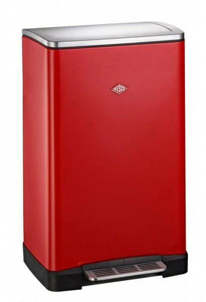 Wesco Big Double Boy in rot. Der Hausmülltrenner mit zwei 18-Liter Kunststoffeinsätzen sorgt für ordnungsgemäße Trennung von Papier, Glas, Kunststoff oder Restmüll.