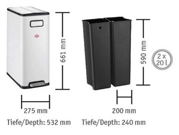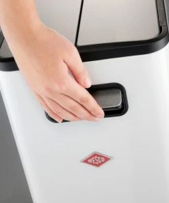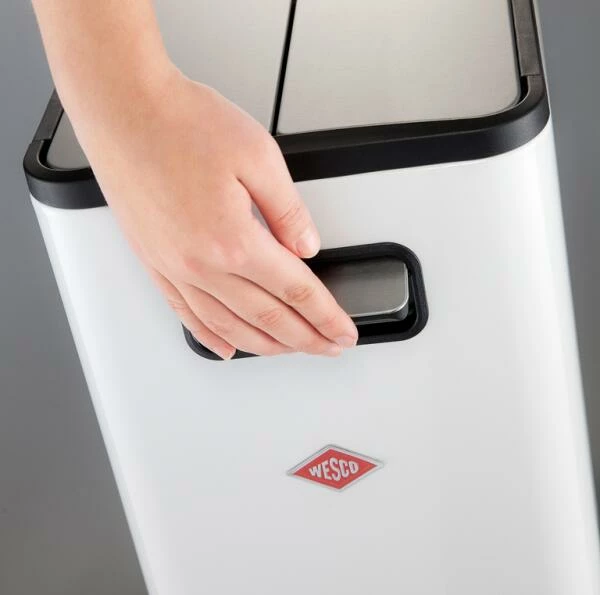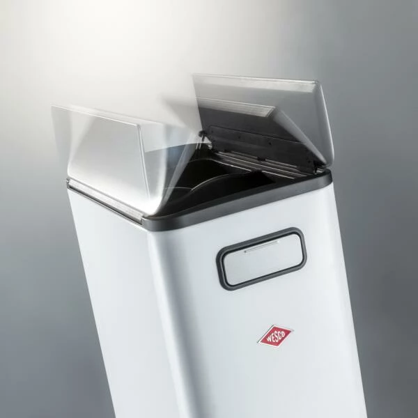 Wesco Big Double Master in weiß. Platzsparender Abfallbehälter mit zwei Einsätzen zu je 20 Liter Inhalt zur ökologischen Trennung von Abfall.