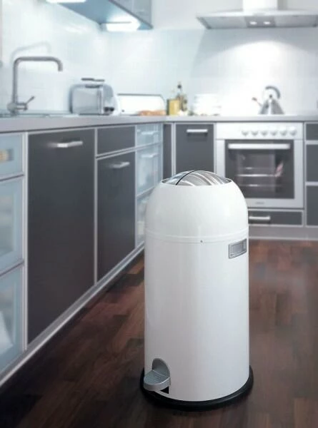 Basierend auf der amerikanischen Idee „großes Volumen – große Einwurfklappe” wurden Korpus und halbrunde Haube des Abfallsammlers Kickmaster so aufeinander abgestimmt, dass die Proportionen perfekt zueinander passen, ergänzt um eine große und technisch stabile Einwurfklappe aus Edelstahl mit Tretmechanik sowie stabile Griffe.