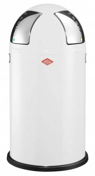 Wesco Abfallbehälter Push Two in weiß. Das Besondere an Push Two: Die Trennmöglichkeit des Abfalls. Der Einsatz ist unterteilt in zwei Kammern, die durch Zwei Push-Klappen befüllt werden können.
